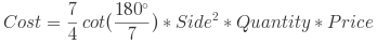 • Calculator > Construction > Heptagon Footage Cost Calculator